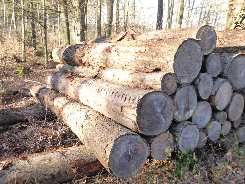 Vielleicht sind bei einem Waldspaziergang schon einmal Baumstämme aufgefallen, die eine Markierung mit einer Zahl oder einem Punkt aufweisen. Für diese Stämme hat das Forstamt bereits die jeweilige Festmeterzahl ermittelt.
